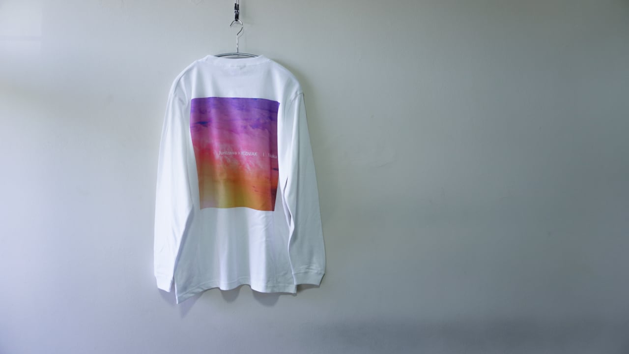 2022年2月リリース、JunIzawa × WOZNIAK “Fubuku” のアートワークが背面にプリントされたロンTです。吹雪いているデザインを背負ってください!